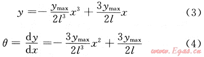 根據(jù)工程經(jīng)驗可知,管道在沉降作用下的變形是隨沉陷量的增大而增加的。設(shè)管道的變形符合三次曲線規(guī)律,由相應的邊界條件: