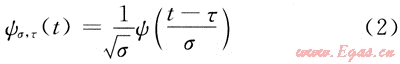 當σ越大時,ψσ,τ(t)伸展越寬、波形越肥胖、主頻越低。當σ越小,ψσ,τ(t)在時間軸上壓縮越強、波形越窄、主頻越高。ψσ,τ(t)是由小波母函數(shù)ψ(t)∈L2(R)在時間軸上經(jīng)伸縮與平移得到的[9],即