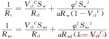 式中:Rt為深探測電阻率,Ω·m;Rxo為淺探測電阻率,Ω·m;Sw為地層含水飽和度,%;Sxo為鉆井液侵入帶含水飽和度,%;Rc1為泥質(zhì)電阻率,Ω·m;Vc1為泥質(zhì)體積含量,%;Rmf為鉆井液濾液電阻率,Ω·m;Rw為地層水電阻率,Ω·m;C為系數(shù),C=1~2。