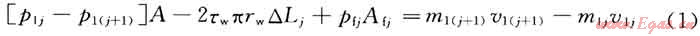 以井筒上第j條裂縫和第j+1條裂縫之間的滲流進(jìn)行研究(圖1),第j條裂縫左端的進(jìn)入壓力為p1j,出口端的壓力為p2j,,進(jìn)入口速度和出口速度為v1j和v2j??紤]井筒內(nèi)壓降,由動(dòng)量定理可得: