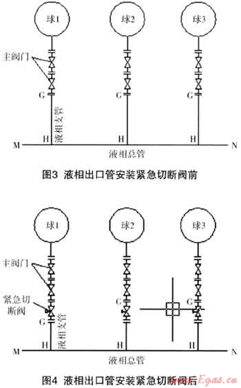 根據(jù)《氣瓶安全監(jiān)察規(guī)定》:《氣瓶充裝許可證》的有效期為4年;有效期滿前,氣瓶充裝單位應(yīng)當(dāng)向原審批部門申請更換《氣瓶充裝許可證》。我公司的液化石油氣儲灌站于2011年7月向河北省質(zhì)監(jiān)局提出《氣瓶充裝許可證》的換證申請;河北省特種設(shè)備學(xué)會于2011年11月對液化石油氣儲灌站進行了現(xiàn)場評審。評審專家根據(jù)新版《城鎮(zhèn)燃?xì)庠O(shè)計規(guī)范》中關(guān)于對“液化石油氣儲罐上安全閥件的配置”,要求我液化石油氣儲灌站3座400m,的液化石油氣球罐的氣相管和液相出口管上的根部主閥門下加裝緊急切斷閥。