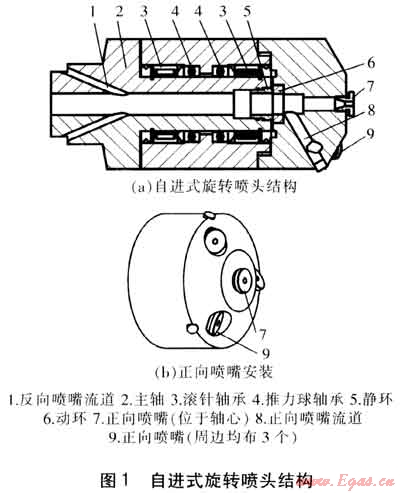 針對這一問題,本文提出利用自進(jìn)式旋轉(zhuǎn)射流清理管道的工藝,并對該工藝中的關(guān)鍵設(shè)備——自進(jìn)式旋轉(zhuǎn)噴頭的關(guān)鍵參數(shù)展開研究。