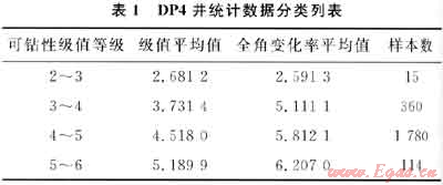 研究分析地層物性條件對(duì)水平井井眼軌跡的影響規(guī)律,至少需要解決2個(gè)問題:①地層物性條件的標(biāo)識(shí)問題,即如何將地層的各種物性特征按照統(tǒng)一標(biāo)準(zhǔn)歸類、分級(jí);②如何建立地層物性條件與井眼姿態(tài)參數(shù)(井斜角、方位角)的對(duì)應(yīng)關(guān)系。其中,地層物性條件的標(biāo)識(shí)問題可以從眾多的地層可鉆性分級(jí)方法中優(yōu)選;而對(duì)于第二個(gè)問題則可以利用統(tǒng)計(jì)分析的方法建立某一區(qū)塊特定鉆具組合在復(fù)合鉆進(jìn)方式下的鉆進(jìn)特性與地層物性的統(tǒng)計(jì)關(guān)系予以解決。