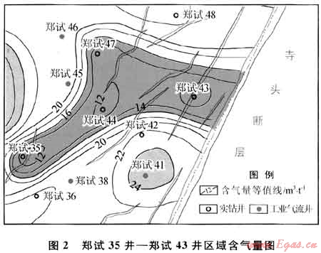 鄭試35井鄭試43井所在區(qū)域(圖2)靠近寺頭斷層,區(qū)域內(nèi)NNE向小斷層發(fā)育,而鄭試35井和鄭試43井均處于斷層附近,距離斷層小于100m3。斷層切割煤層會(huì)破壞頂?shù)装宓姆獯嫘阅埽铀倜簩託獾慕馕?、逸散,且部分?jǐn)鄬涌赡軠贤簝?chǔ)層附近含水層,導(dǎo)致煤層氣的溶解流失。因此,鄭試35井-鄭試43井區(qū)內(nèi)含氣量普遍較低,鄭試35井、鄭試43井的含氣量?jī)H為3.24m3/t和8.06m3/t。
