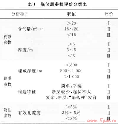 通過(guò)對(duì)煤儲(chǔ)層資源參數(shù)、地質(zhì)參數(shù)、儲(chǔ)層物性參數(shù)進(jìn)行評(píng)價(jià)和分類(lèi)(表1),形成一套適合該區(qū)的煤儲(chǔ)層評(píng)價(jià)技術(shù)體系,并掌握了區(qū)內(nèi)含氣量分布特征(一般介于15~25m3/t,平均為20.2m3/t,66%的井含氣量大于20m3/t),劃分出3個(gè)Ⅰ類(lèi)建產(chǎn)區(qū)、4個(gè)Ⅱ類(lèi)建產(chǎn)區(qū)、4個(gè)Ⅲ類(lèi)建產(chǎn)區(qū),為產(chǎn)能建設(shè)提供了有利區(qū)塊。