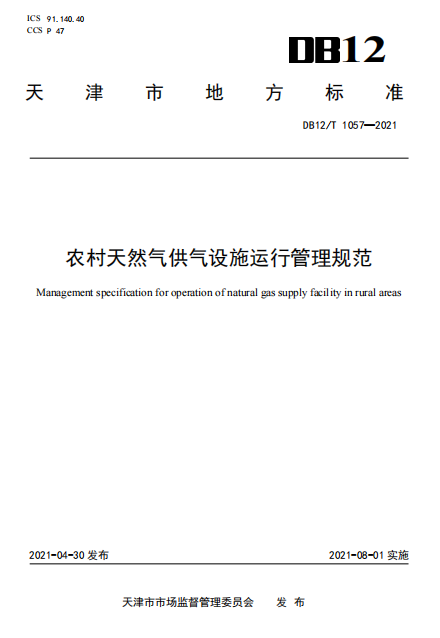 《農村天然氣供氣設施運行管理規(guī)范》 DB12∕T 1057-2021 發(fā)布