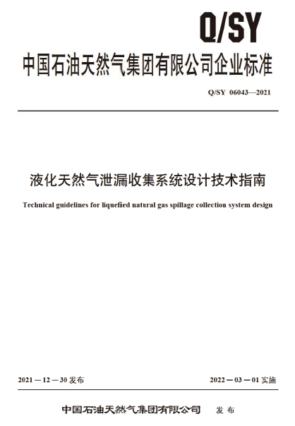 本文件提出了陸上液化天然氣站場泄漏收集點、設計泄漏量、收集盤或地坪、收集管(溝)、集液池及輔助設施的設計要求。